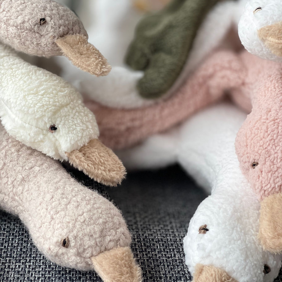 Onze Mama Lulu (44 cm) is uitgevoerd in teddy wit met zachte teddy snavel en pootjes. Het perfecte maatje voor de allerkleinsten ā een knuffel die troost, gezelschap en gezelligheid brengt.